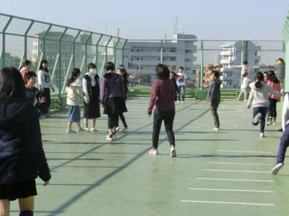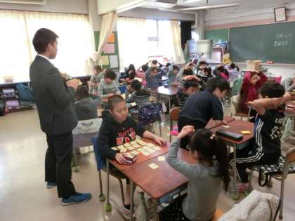 屋上で、学級活動に取り組んでいる学級、教科「日本語」で百人一首に取り組んでいる学級もありました。どちらも楽しそうでした。