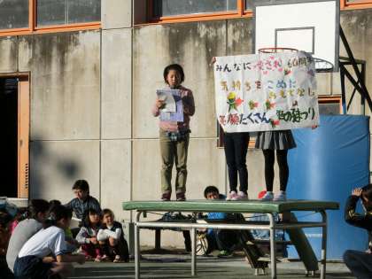 長縄跳びを楽しんだあと、代表委員会から、1月20日(土)に開く「笹の子まつり」のスローガンが発表されました。