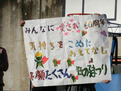 “みんなに愛され60周年 気持ちをこめたおもてなし 笑顔たくさん 笹の子まつり”です。当日をめざして準備を進めている子どもたちです。