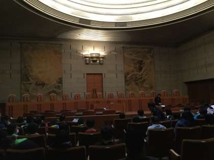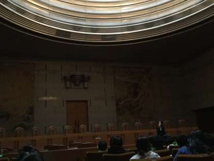 最高裁判所を見学しています。来る機会の少ない場所です。しっかり見て、聞いて、学んでいます。