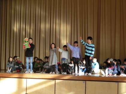 今日の集会は、今週末の土曜日に実施される「笹の子まつり」のお店を紹介する集会でした。笹の子班でアイデアを出し、練習した成果を発揮し、どの班も行ってみたいと思わせる素晴らしい紹介ができていました。(こちらは赤班の紹介の様子です。)