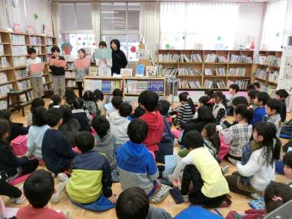 また、図書館で待機していた2年生に対しては、直接、図書館で開会式を行いました。