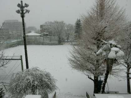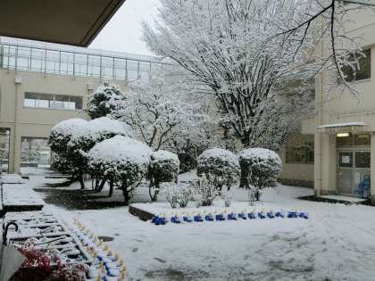 校庭も雪景色となり、6校時を終えた子どもたちは、歓声を上げながら帰宅し始めています。