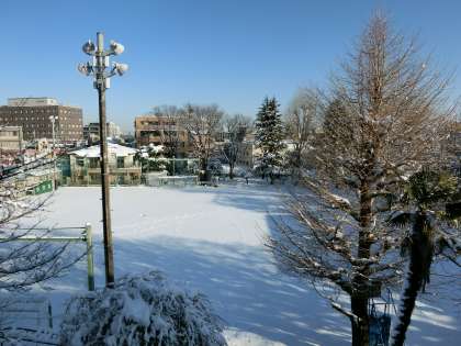 1/23 青空と雪景色の校庭です!