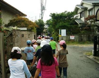 10月21日(木)は、1年生の遠足です。10月13日(水)は、安全に歩くこと、すばやく集合すること、園内のルールを守ることをねらい、すみれば庭園まで遠足の練習も兼ねて出かけました。みんな決まりを守って行くことができました。