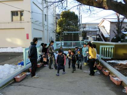 昨日以上に冷え込みを感じる中、路面の凍結に気を付けながら、子どもたちが登校してきました。今朝もあいさつキッズの5・6年生が、町会長さん、先生方と一緒に、「おはようございます!」の声かけ活動に取り組んでいました。