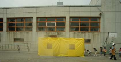煙中訓練の方法について、係の方から話を聞き、1〜6年生がハンカチを口に当て、取り組みました。