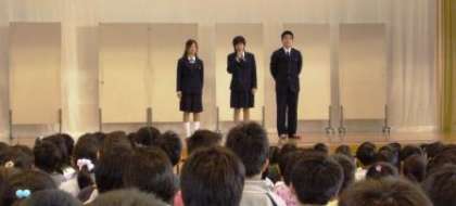 10月23日土曜日は、桜丘中学校でさくらフェスティバルが開かれます。10月18日の児童朝会で、桜丘中学校の代表3名がさくらフェスティバルの宣伝に来校しました。落ち着いた話し方、態度はさすがに中学生らしい立派なものでした。