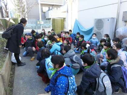 朝8時10分に出発し、電車に乗って梅が丘まで行きます。山崎小へついたらまずは、先生のお話をしっかりと聞きます。