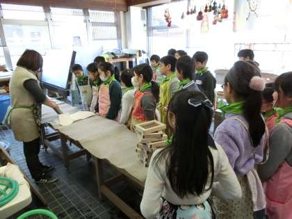 世田谷区立山崎小学校内にある、伝統工芸教室へ紙すき体験に行ってきました。