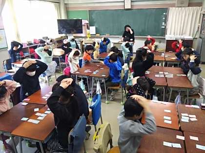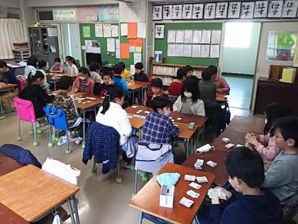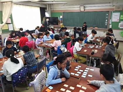 3年生と4年生は合同で4教室を会場に、教科「日本語」の学習で学んだことを活かし、「百人一首大会」を行っています。