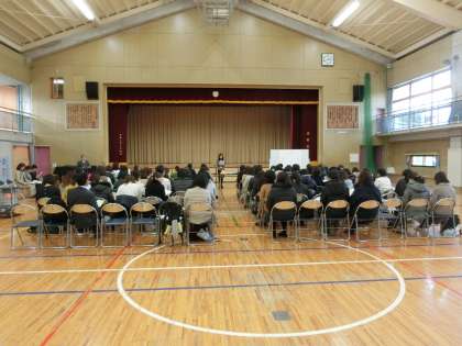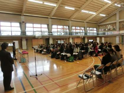 午後2時より体育館において、平成30年4月に入学する新1年生の保護者の皆様にご出席いただき、説明会を開催しました。