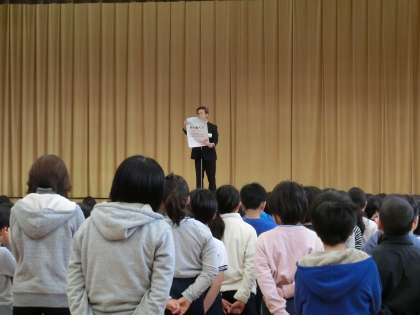 今日の朝会の校長先生のお話は、二十四節季の「雨水」についてと、「人格の形成をめざして」の今月の目標「やりぬく心」に関連した、平昌冬季オリンピックの男子フィギュアで金メダルをとった羽生選手のお話でした。6年生による笹の子スピーチは、自分のお気に入りのノートについて、なぜ使いやすいと感じるのかを調べて発表していました。