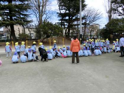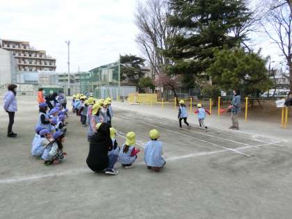 桜丘幼稚園の子どもたちが、笹原小へ体力測定にやってきました。今日の校庭は寒かったのですが、子どもたちは元気に力いっぱい走っていました。
