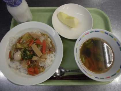 今日も給食でごはんがでているので、おいしいごはんの炊き方についてお話します。昨日はお米の洗い方をお伝えしましたが。今日は「浸水」についてお話します。浸水とは、洗ったお米を火にかける前に水に浸しておくことです。では、どのくらいの時間水に浸しておけばよいでしょうか?