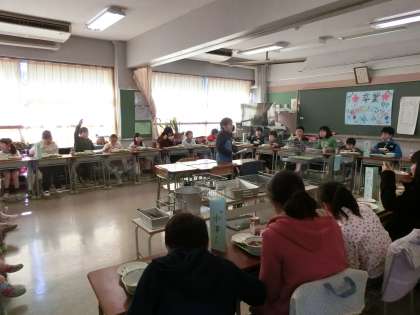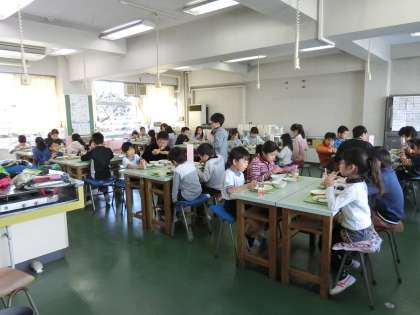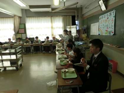 準備のできた教室に6年生を招いて、笹の子班で食べる最後の給食です。今年1年間を振り返り、楽しい思い出話も出ていたのでしょうか、笑顔で食べていました。