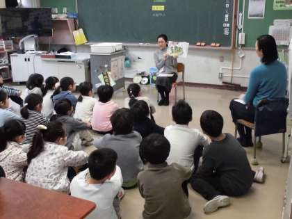 今日は、1年生3学級と2年生1学級、3年生2学級の計6学級で読み聞かせをしていただきました。子どもたちは、しっかり話に聞き入っていました。2名×6学級で12名の皆様にお集まりいただき、ありがとうございました。