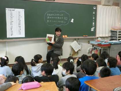 今朝の朝読書の時間、4年1組と2組で、お話しポケットの方々による読み聞かせがありました。