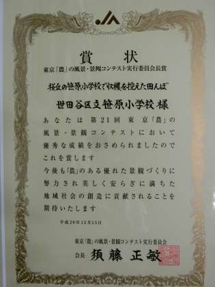 今年度、JA世田谷目黒ファーマーズセンター営農経済部で応募した「東京『農』の風景・景観コンテスト」で、東京「農」の風景・景観コンテスト実行委員会より実行委員会会長賞を受賞しました。