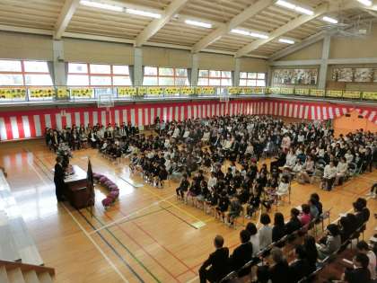 ご来賓の皆様、新1年生の保護者・ご家族の皆様にご臨席をいただき、新1年生89名が、本日、笹原小学校に入学しました。