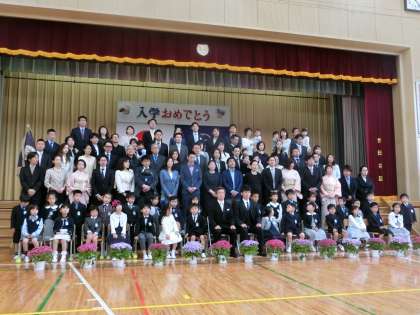 体育館での入学式を終え、入学記念写真を撮影し、各教室で担任からの話を聞いたり、教科書などの配布物を保護者の方々と一緒に行ったりしました。
