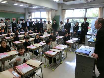 初めての小学校の教室、初めての机と椅子、新しい友達と、小学校生活がいよいよスタートです。