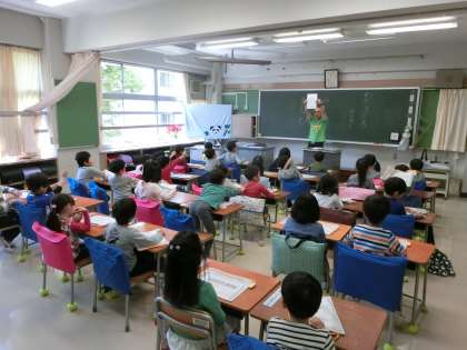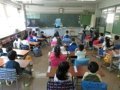 今日は2年生以上は全校朝会に参加していますが、“お話しポケット”のみなさんによる「お話会(読み聞かせ)」からスタートし、学校生活を落ち着いて始められるよう支援をしています。毎日、学級で、学年で、工夫した取組や活動を進めていきます。