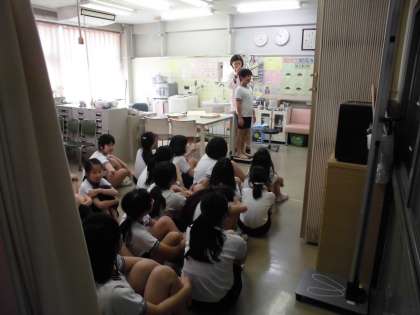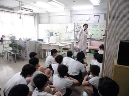 今日は、5・6年生の身体計測の日です。養護の先生から身体計測についてのお話を聞いた後、測定をします。