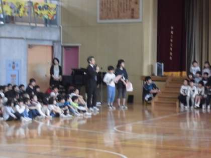 代表委員会の子どもたちの司会で、始めのことば、校長先生のお話、歓迎のことばとプログラムが進んでいきます。