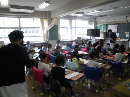 本校で実施しているスタートカリキュラムの様子を視察に、世田谷区幼児教育アドバイザー、大学の先生、教育委員会、アプローチカリキュラム・スタートカリキュラムのとりまとめをしていただいている先生方がお見えになりました。