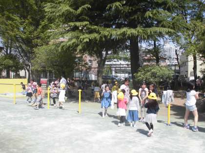 4/12 1年生、中休みの校庭遊び(初お目見え)