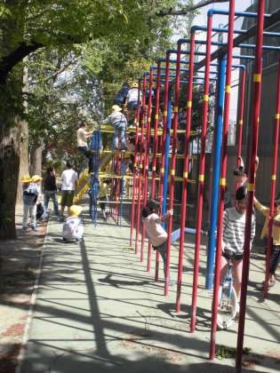 今年から、1年生は黄色い帽子をかぶっているので、校庭でもどこに1年生がいるのかとてもよく分かり、上級生も上手に気を配りながら遊んでいました。1年生の子どもたちも、遊具で遊んだり、校庭を走ったり、思い思いの遊びを楽しそうにしていました。