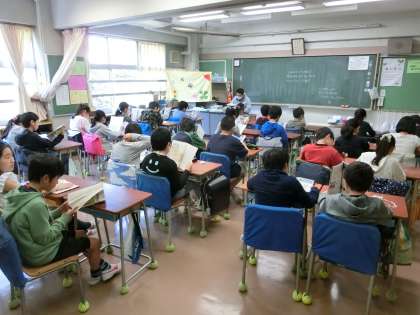 放送委員会のみなさんから校内放送で「朝読書の時間です。静かに本を読みましょう!」のアナウンスもあり、各教室では静かに読書活動に取り組んでいました。