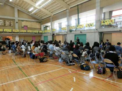 午後4時より体育館において、1・2・3年の保護者会全体会を行いました。