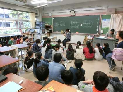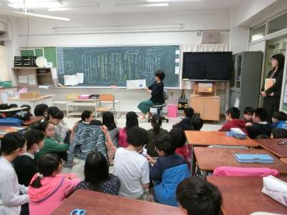 6年生2学級でのお話しポケットの方々による読み聞かせの様子です。