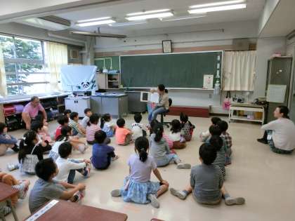 今朝の朝読書に時間には、1年1組・3組、4年1組・2組で、お話しポケットの方々による読み聞かせがありました。