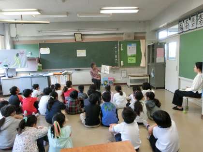 それぞれの学級に2人ずつ入っていただき、1冊ずつ本の紹介をしてくださいました。楽しいお話に聴き入る子どもたちでした。