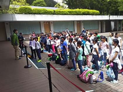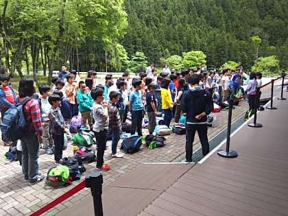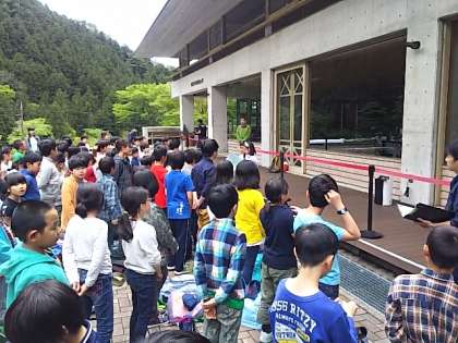 宿舎のふじやまビレジに到着しました。早速、開室式を行いました。3日間お世話になる宿舎の方々にあいさつをしました。いよいよ川場村での生活が始まりました。