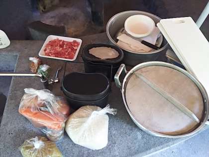 いよいよ今日の夕食、カレーライスづくりに挑戦です。