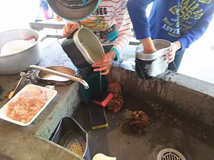 それぞれのグループで役割分担をし、調理やかまどづくりの活動が 始まりました。おいしいカレーライスができるよう、協力体制も見事です。