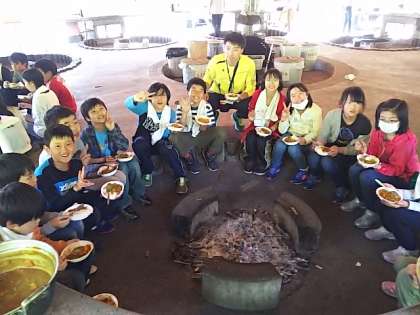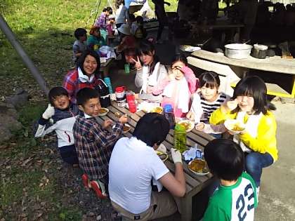 現在、片付けの仕方について、補助員さんから説明を受けています。食べたあとの活動も大切にしようと準備を進める子どもたちです