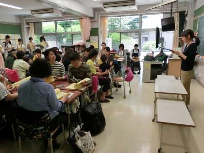 栄養士から学校給食についての話を聞いた後、配膳から試食、片付けまでを実際に体験して、笹原小学校の給食の様子や味などを知っていただくことができました。