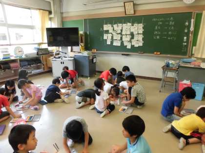 宿題だった調べ学習をもとに、グループに分かれ地図に色をぬりました。