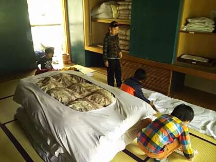 昨日の講習で学んだことを活かしながら、生活班で協力して進めています。