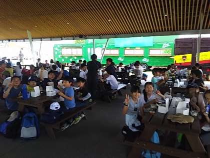 現在、買い物タイム中です。おこづかいを持って、おみやげ購入に行っています。