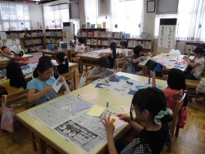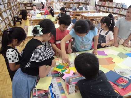 いつも工夫して取り組んでいただいている図書館イベントですが、今回は、フォトフレーム作りでした。用意された画用紙の色を選び、スタンドを作り、飾り付けまで一人ひとりが楽しそうに取り組んでいました。保護者の皆様も何名か一緒に楽しんでいらっしゃいました。出来上がったフレームに、どんな写真を飾るのでしょう。写真選びも楽しんでください。