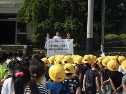 今日の全校朝会での校長先生のお話は、先週、5年生が出かけていた川場移動教室についてのお話とキーワード「練習」にかかわるお話でした。今日から運動会特別時間割が始まります。運動会の練習にみんなで真剣に取り組みましょう。