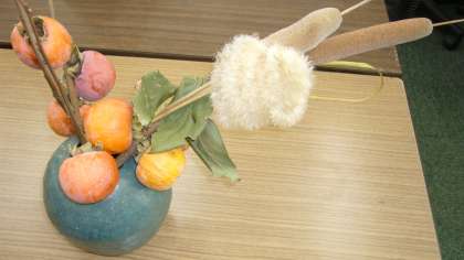 10月中旬、学校のビオトープの蒲を刈り取りました。刈り取った蒲の何本かは、目の教室の花瓶にさしていました。11月11日(木)蒲の穂が膨らみ、中から、きれいな綿毛が出てきました。