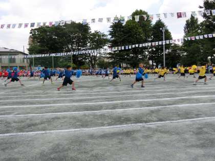 短距離走「40m走」、団体演技「みんなでげんきにやってみよう!」、団体競技「チェッコリ玉入れ」で、力を発揮しました。