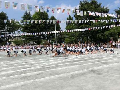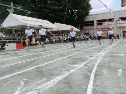 短距離走「100m走」、団体演技と団体競技は6年生とともに「The Earth 2018」「騎馬戦」を行い、高学年らしさを表現・発揮しました。